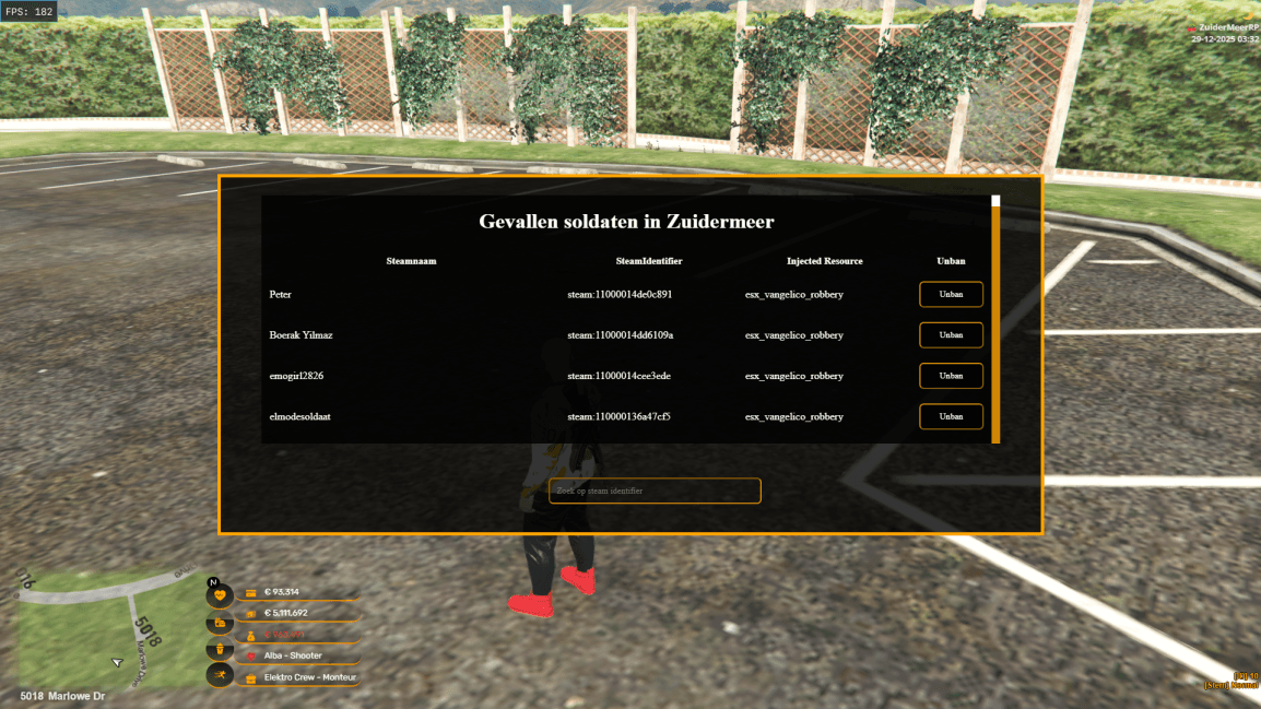 Deze uitgebreide remake van de bekende CFX Server Zuidermeer bevat vrijwel alle essentiële scripts en functionaliteiten die je nodig hebt om direct een professionele roleplayserver te starten. Wat zit er in deze remake? Bijna alle scripts, gebouwen, voertuigen en kleding zijn inbegrepen. Een aantal scripts zullen ook obfuscated met een license komen om het leaken tegen te gaan. Let wel op: sommige locked assets en andere beschermde onderdelen zijn niet aanwezig. Als extra informatie heb ik links toegevoegd naar deze assets van de originele creators. Daarnaast zullen er periodiek updates en bugfixes worden uitgebracht. Hoewel wij ons best doen om verbeteringen door te voeren, zijn er geen garanties over de frequentie of beschikbaarheid hiervan.